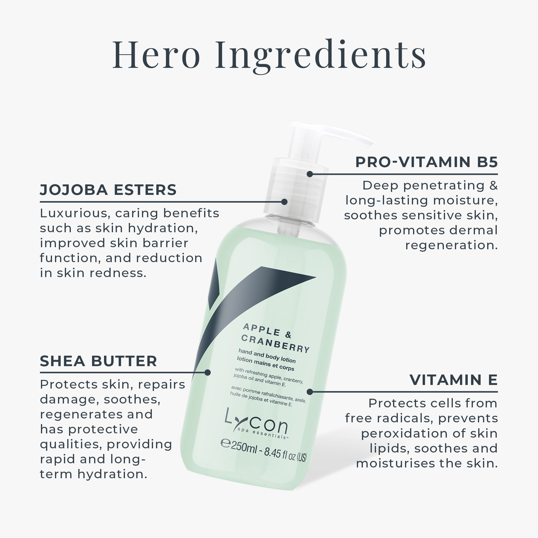 This fast-absorbing hand and body moisturising lotion, specially formulated with Pro-vitamin B5 and Vitamin E, effectively minimises the visible signs of ageing, nurtures and protects the skin, while it conditions cuticles and nails.